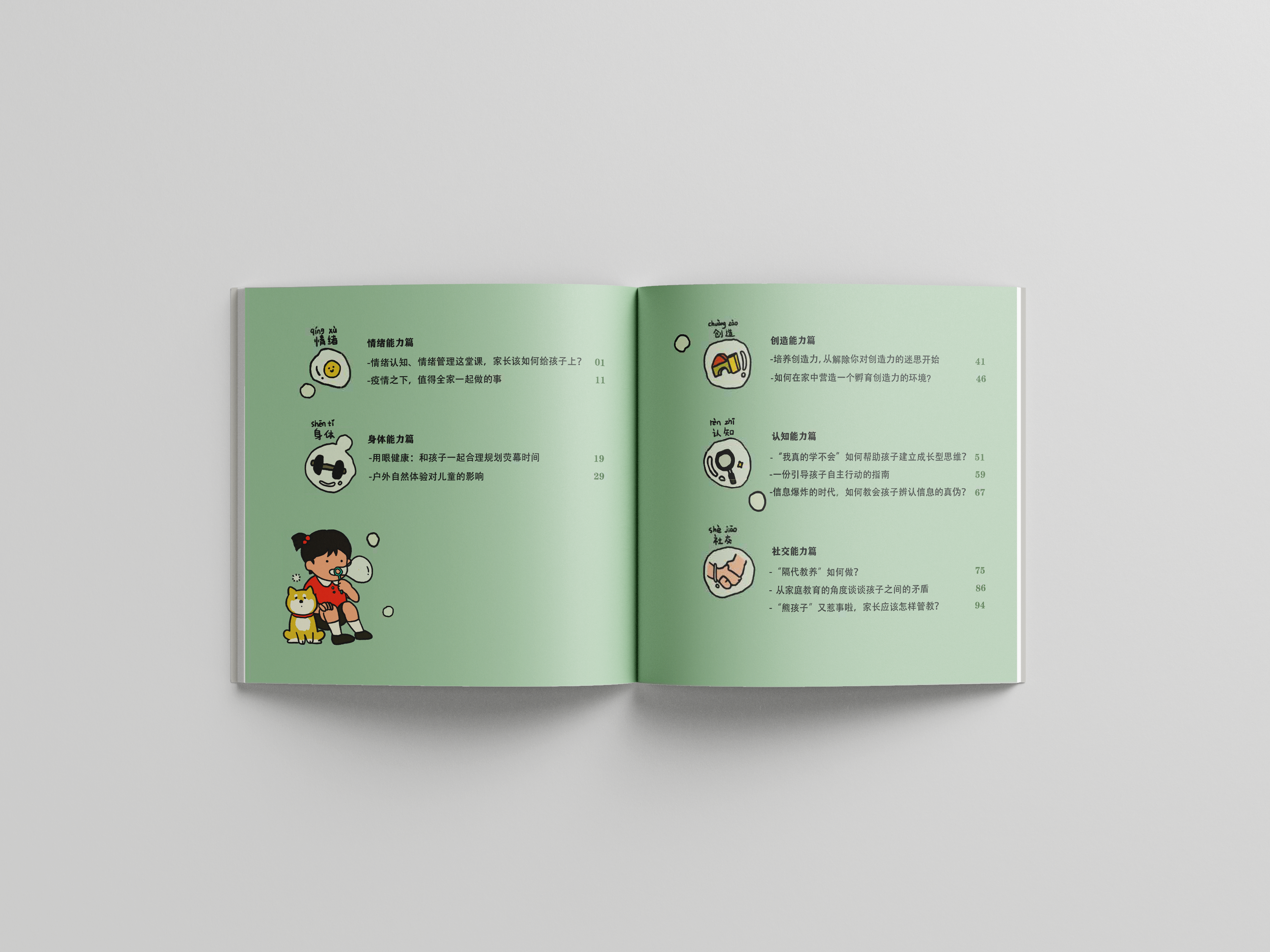 在这样的大背景下,清华大学终身学习实验室受乐高基金会委托研究发布了《家庭一起玩着学》白皮书。这本亦科普亦实用的小册子,旨在成为父母与小朋友共读的材料。基于儿童全面发展的理论基础,本书分为情绪能力篇、身体能力篇、创造能力篇、认知能力篇、社交能力篇,围绕着当下家长们所关心的热点话题展开,既结合前沿科学研究总结了易读的科普内容,又为家长和小朋友提供了切实可行的策略和家庭活动。