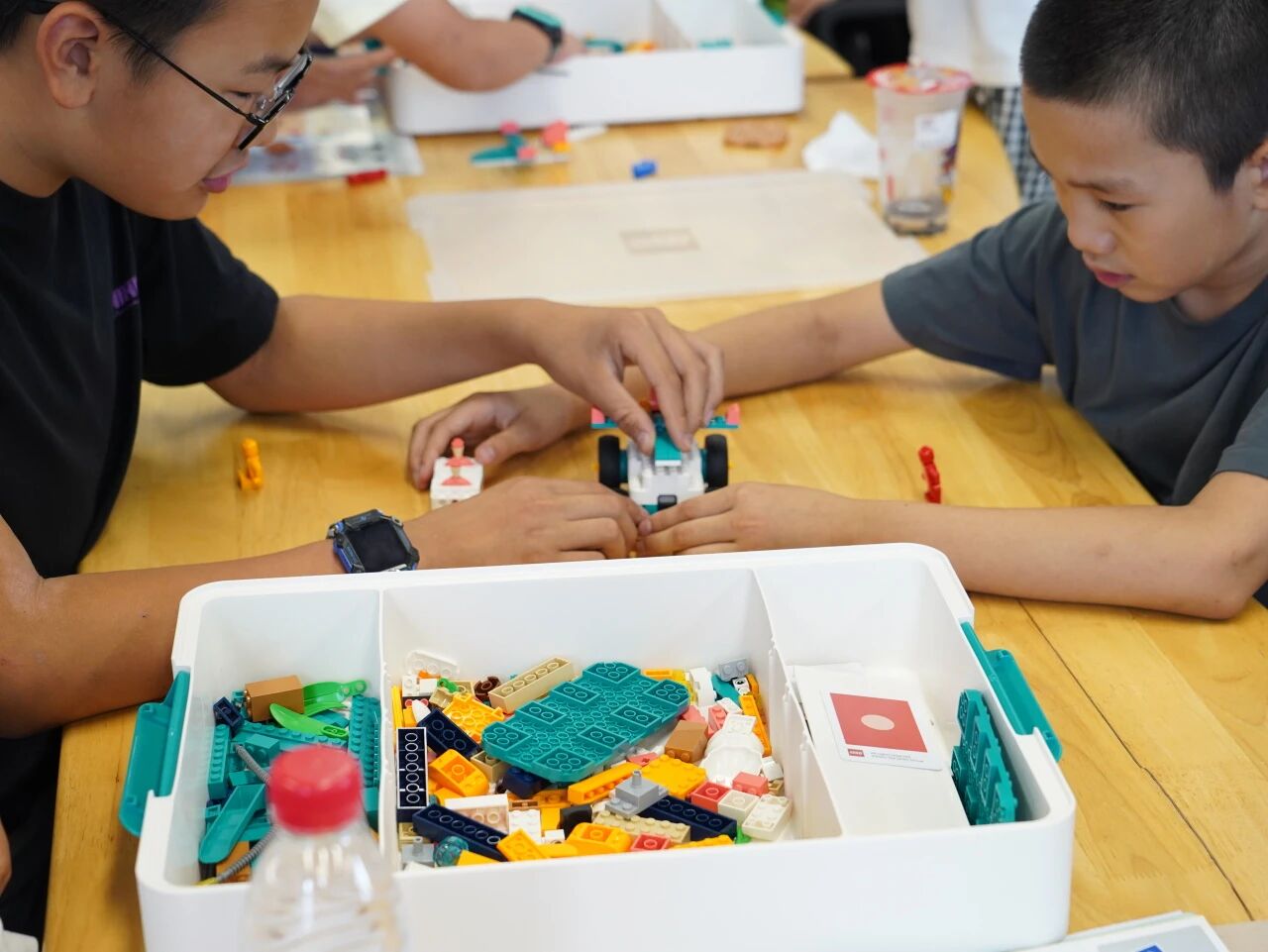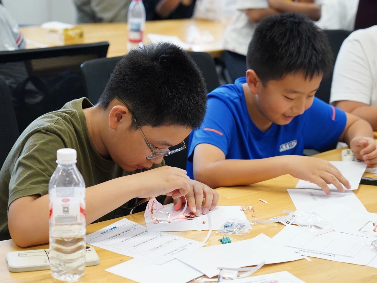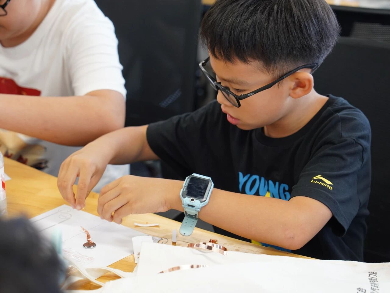 下午,在欢快的氛围中,25位小学生动手体验了乐高教育科学套件和纸电路的两场实践工作坊,分别由乐高教育徐佳俊老师和师育未来的蔡畋老师引导。
