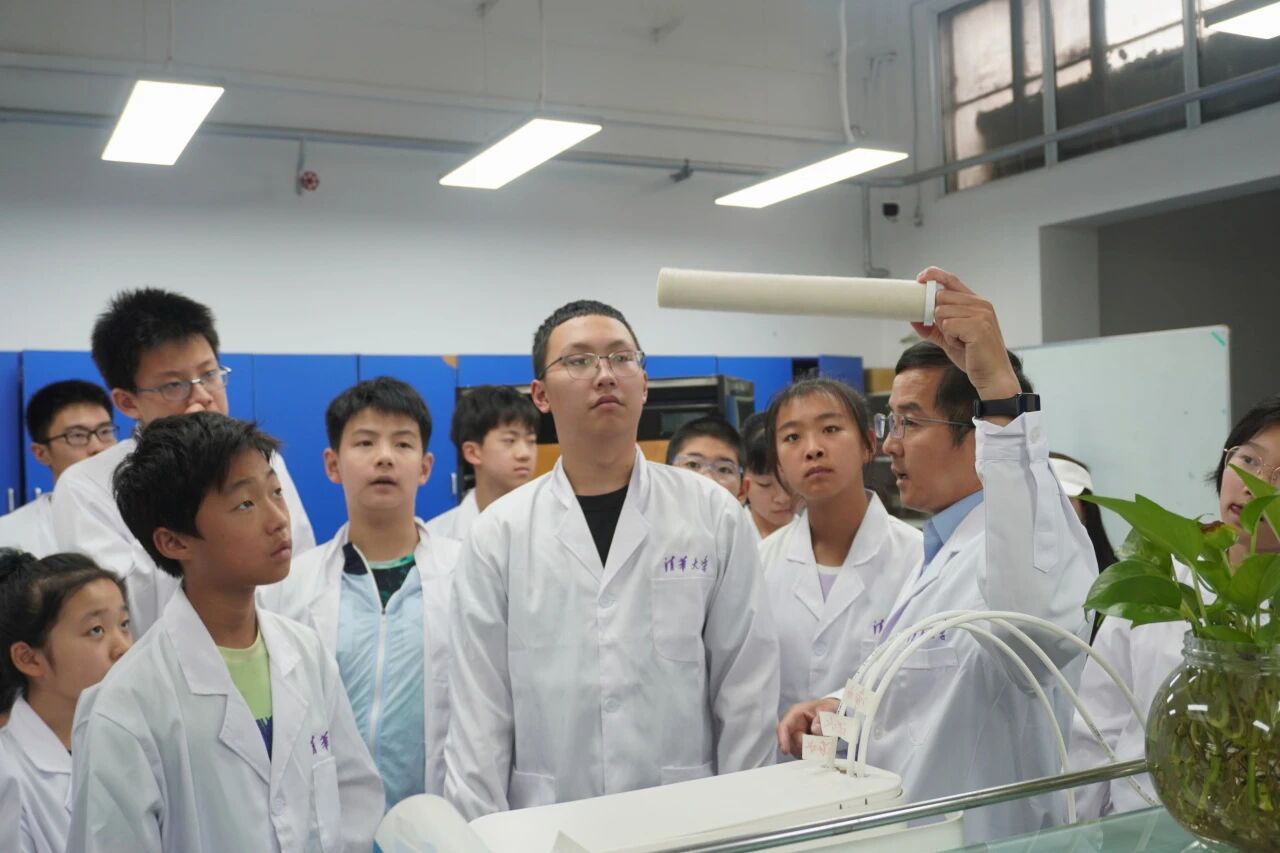7月8日下午,同学们赴清华大学环境科学与工程国家级实验教学示范中心参观。中心副主任刘训东老师先进行了生态环保知识讲解(自来水、污水、垃圾分类及处理等),并现场通过实物拆解,让同学们了解净水器的内部结构、技术方法和工作原理,最后同学们分组进行了水质净化小实验。