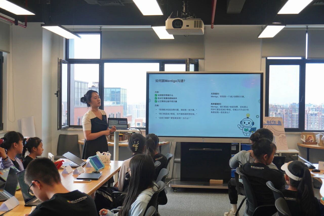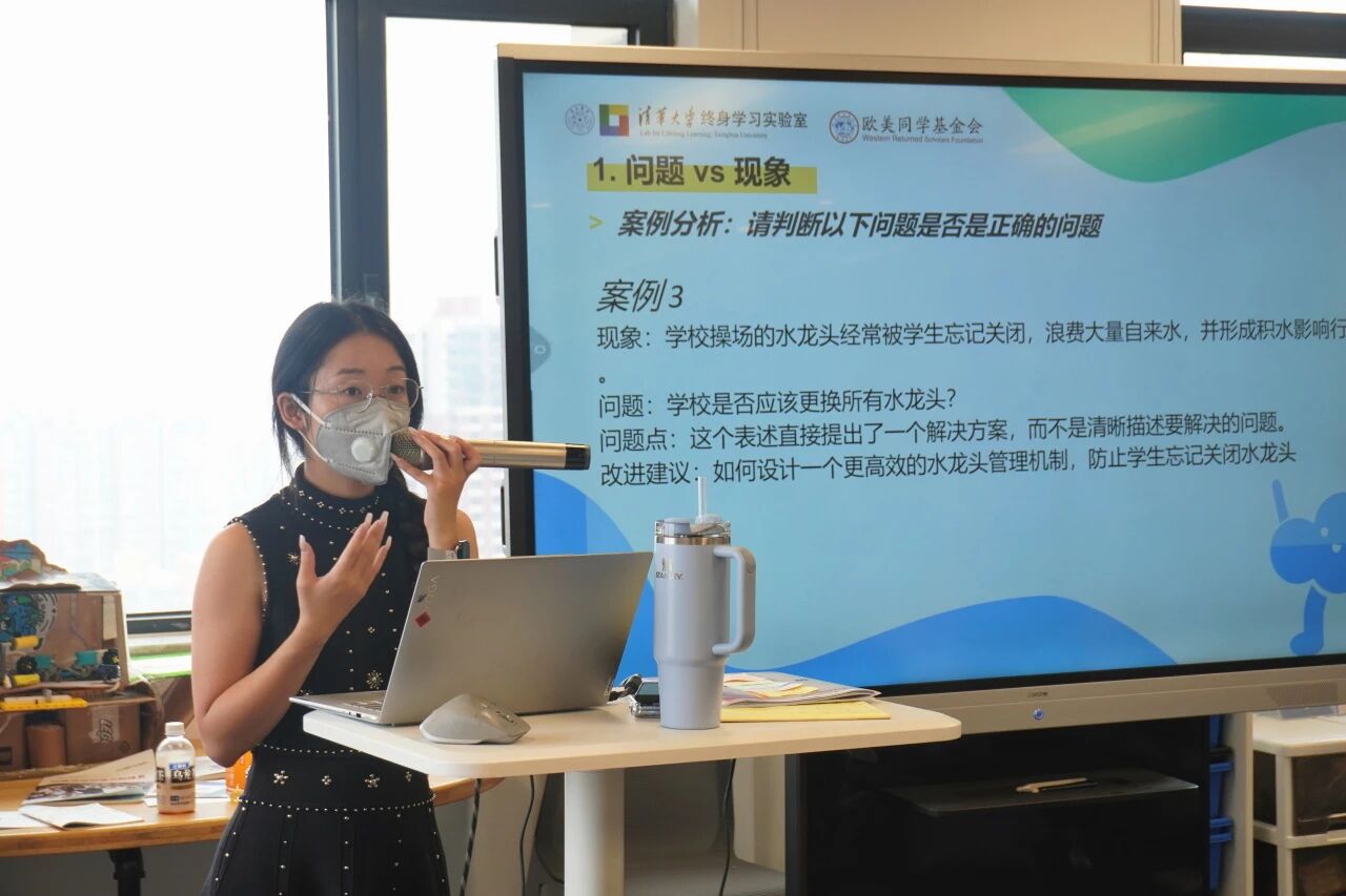 清华大学终身学习实验室研究专员Ella Xia老师讲解PBL主题学习,带领同学们聚焦问题,进行方案的创想和构思