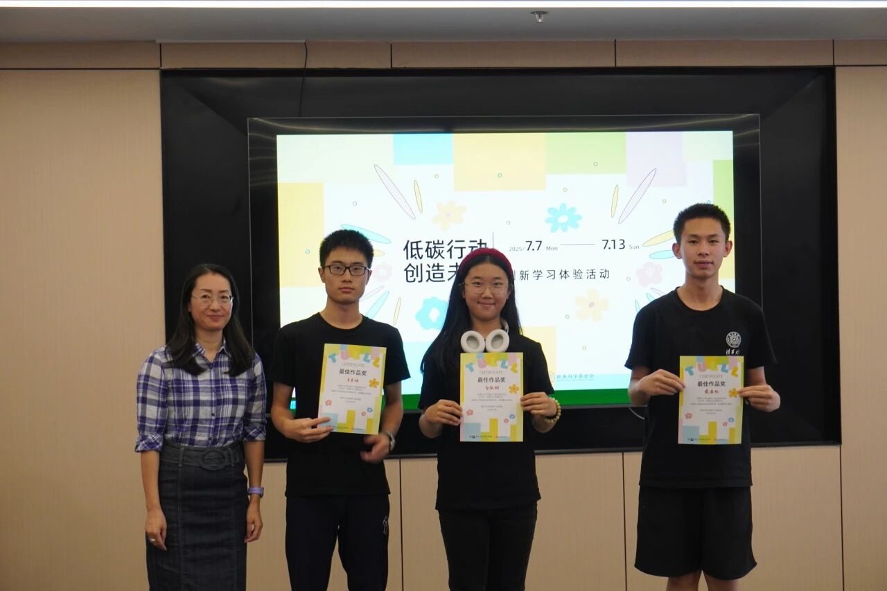 在整个创新学习体验活动中,清华大学未来实验室、清华大学终身学习实验室的老师和助教为同学们讲述科研方法、设计思维、工程通识课,带领同学们熟悉创意工具,并引导同学们基于环保主题设计挑战任务。在经历了“准备阶段——提案——解决方案——原型设计——原型制作——最终汇报”的学习过程后,同学们以小组为单位,以海报、宣传视频、汇报PPT和实物原型等形式展现了他们在创新学习期间的学习成果和解决方案。