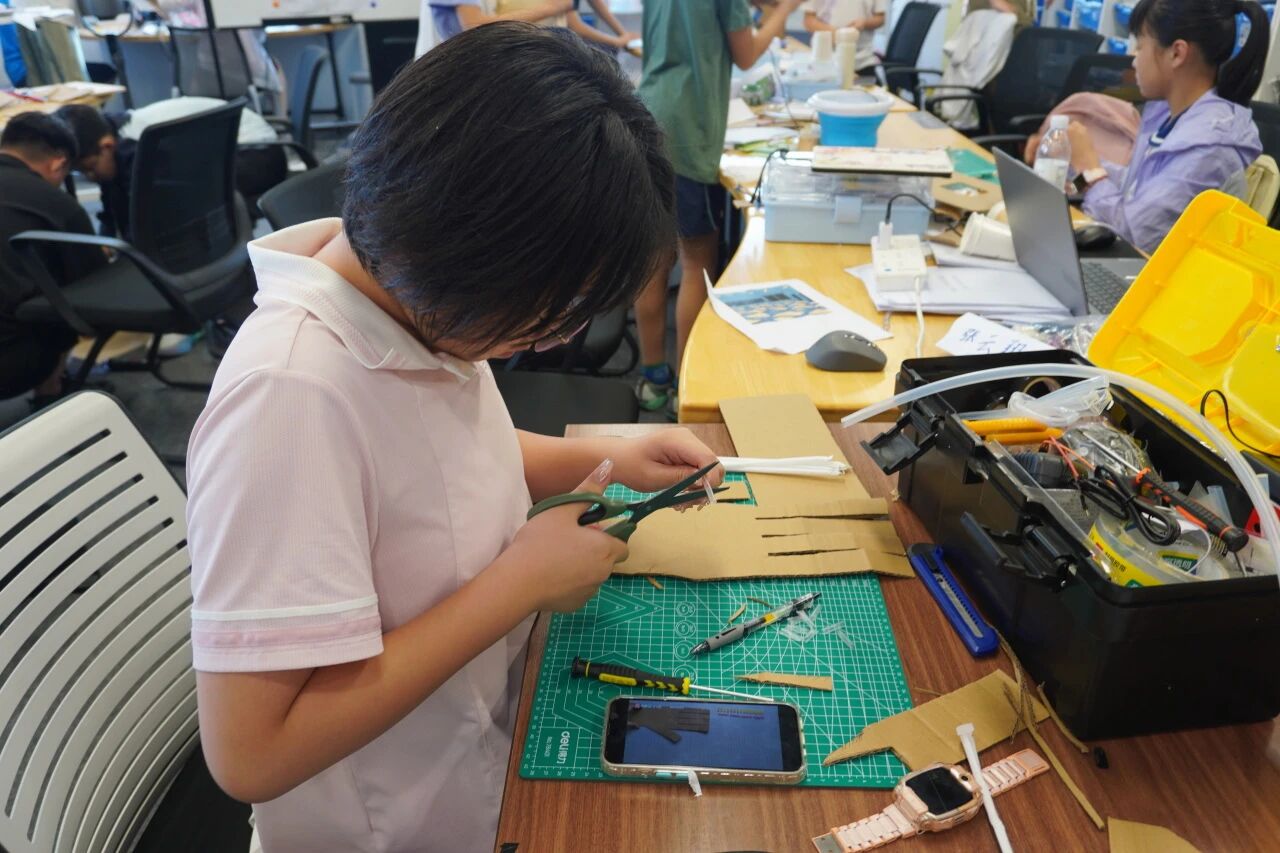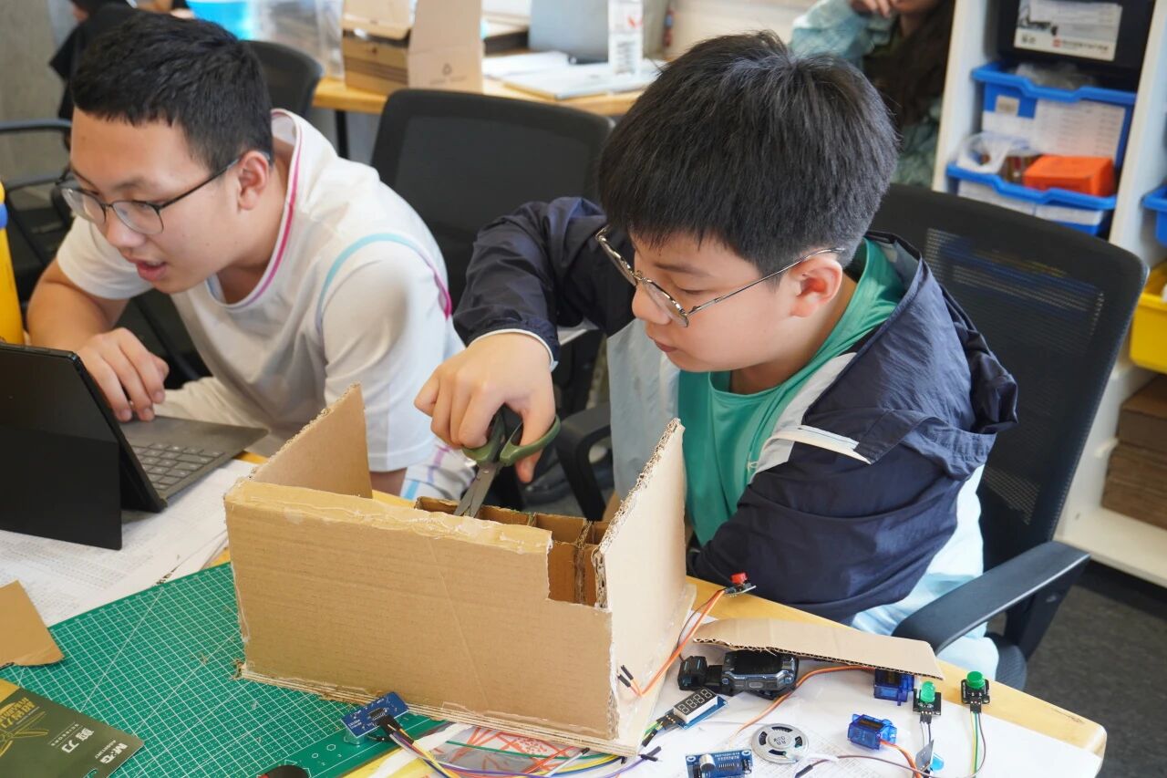确定方案后,同学们开始深入讨论、分工合作、完善解决方案,并进行实物模型的初步制作。