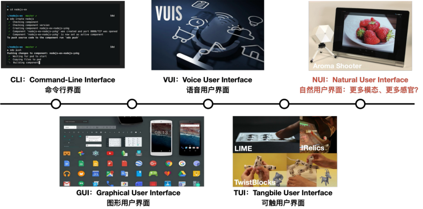 ○ NUI(自然用户界面):引入更多模态和感官(如手势、语音、眼动追踪、五感),更贴近人的自然行为。